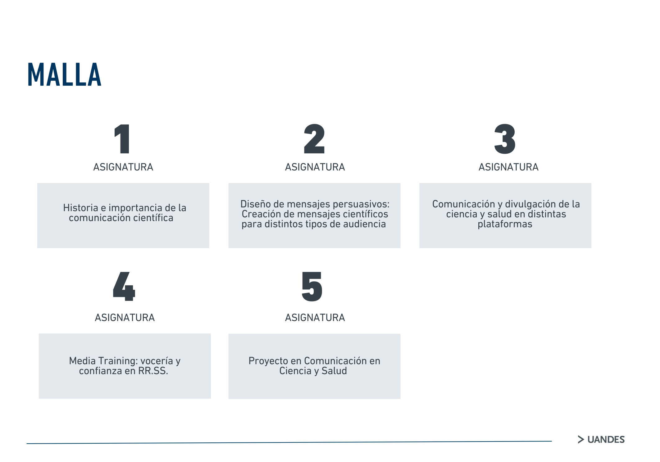 La metodología del programa combina clases sincrónicas, con un enfoque práctico basado en casos de estudio reales y ejemplos de comunicación mediática. Los estudiantes conocerán los principales lineamientos de la divulgación en ciencias, aprenderán a desarrollar habilidades en comunicación en salud, además de estrategias de difusión y divulgación del conocimiento en distintas plataformas. El plan de estudios abarca varias actividades para preparar a los estudiantes para enfrentar desafíos de comunicación de manera segura y efectiva en el sistema mediático y, en especial, en plataformas digitales.