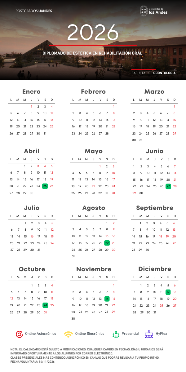 Calendario de Diplomado de Estética en Rehabilitación Oral – Semipresencial Descargar