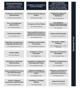 Cada curso está diseñado para proporcionar una formación exhaustiva en su respectiva área, asegurando que los egresados del programa cuenten con un conocimiento sólido en todos los aspectos clave del Derecho Municipal.