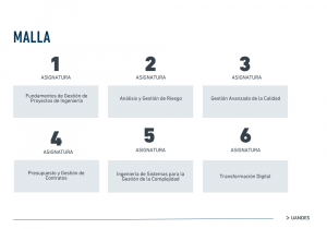 Al concluir el programa, estarás preparado para asumir roles de liderazgo y gestión en diversas industrias, desde la minería, construcción y fabricación hasta servicios financieros como la banca y el sector minorista, convirtiéndose en la llave que abre las puertas hacia una exitosa carrera en la ingeniería y gestión de proyectos.
