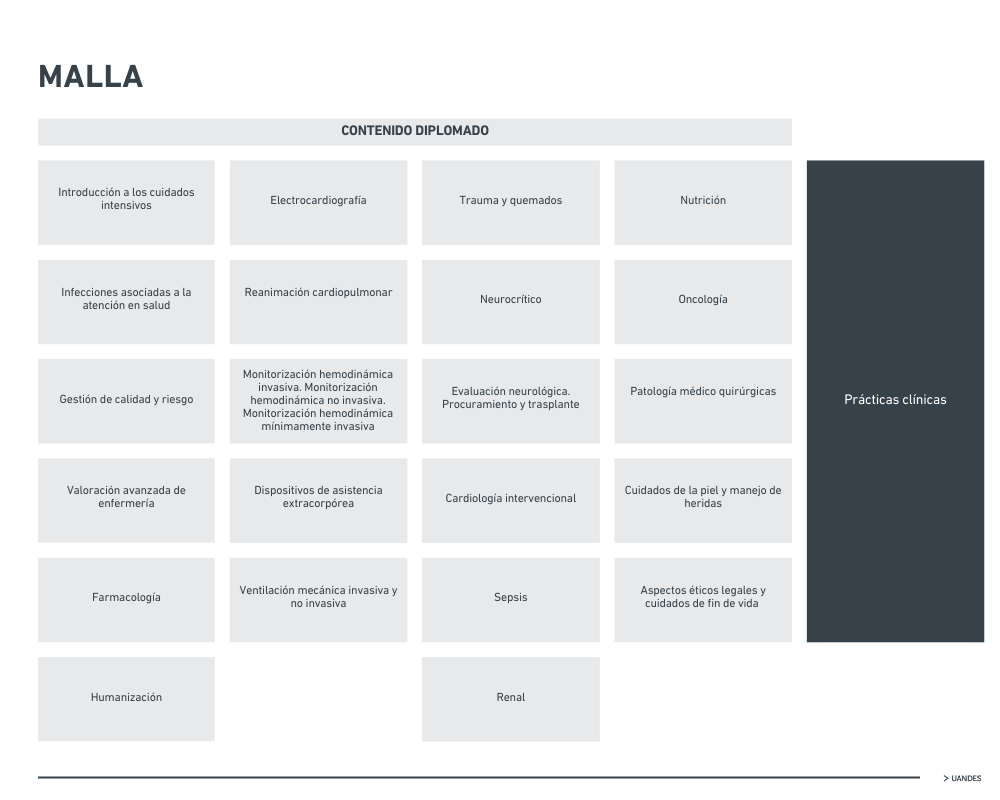 Nuestro programa se centra en la aplicación práctica de conocimientos teóricos en situaciones de la vida real. Los participantes desarrollarán habilidades sólidas para el manejo de personas en situación crítica de salud a través de experiencias clínicas en reconocidos centros de la Región Metropolitana, presentación de casos clínicos y realización de seminarios de búsqueda de literatura. Para esto contamos con un cuerpo docente compuesto por profesionales de la salud con amplia experiencia en el cuidado del paciente crítico. Los participantes aprenderán de expertos que están en la vanguardia de la práctica y la investigación en enfermería.