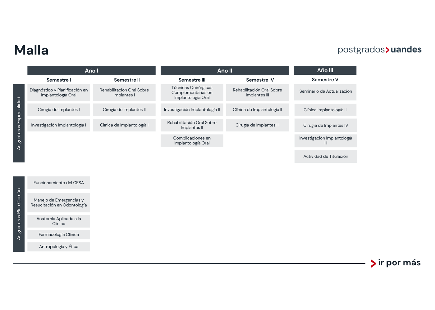 Especial preocupación en la formación de nuestros estudiantes constituye la entrega de competencias clínico-quirúrgicas para la instalación protésicamente guiada de los implantes, lo que implica la preparación y desarrollo quirúrgico del sitio receptor. Esto establece un rasgo diferenciador de nuestro programa.