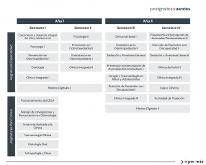La Facultad de Odontología de la Universidad de los Andes, busca formar un profesional odontopediatra con sentido humanitario, con afán de servicio, solidario y comprometido con la sociedad. Asimismo, desarrolla especialistas en la atención de la salud bucal de lactantes, pre-escolares, escolares, adolescentes; como también niños y adolescentes con discapacidad y riesgo médico.