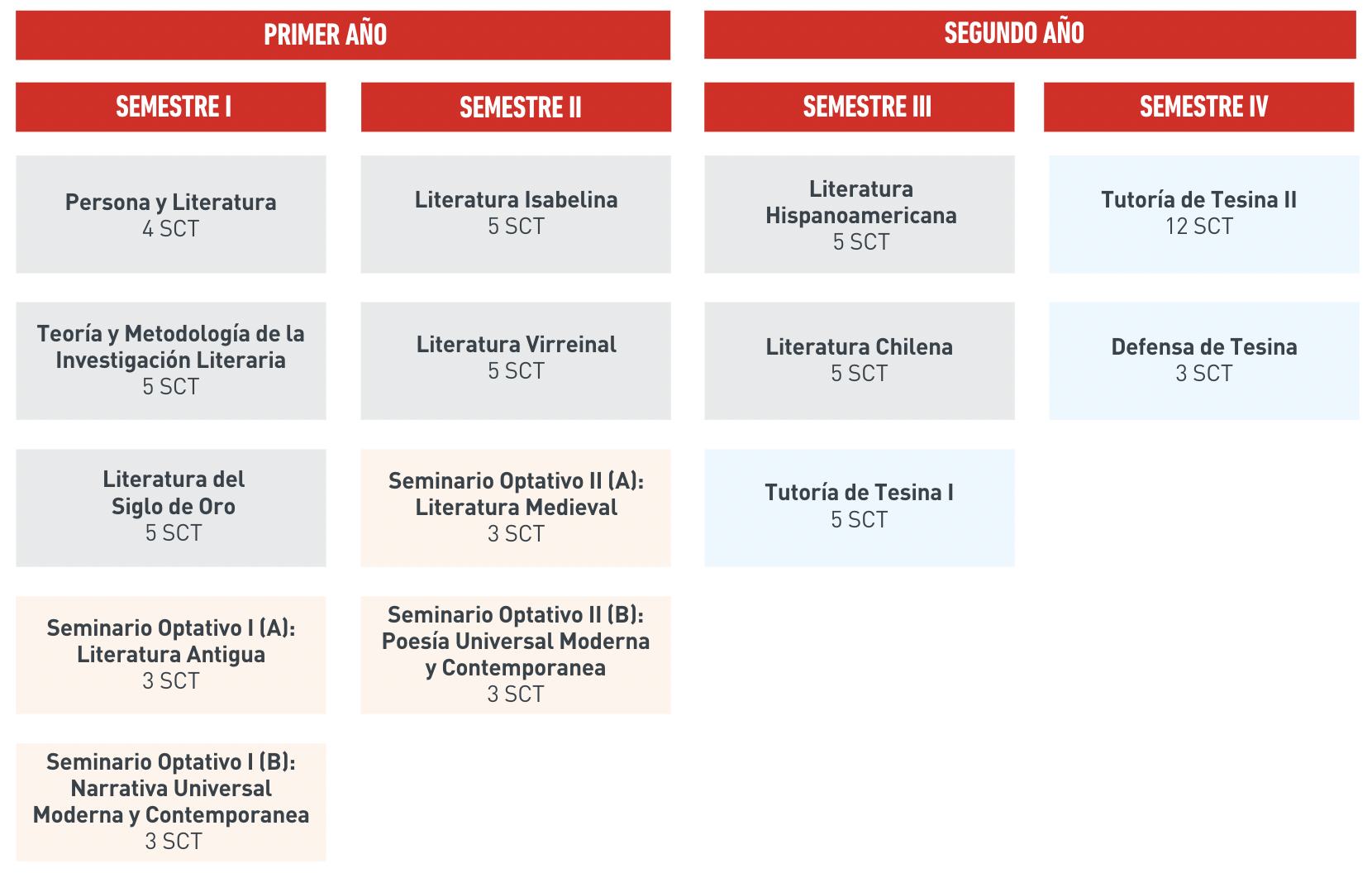 Cuenta con un cuerpo docente de reconocido prestigio, conformado por doctores especializados en Siglo de Oro, Literatura Isabelina, Literatura Virreinal, Hispanoamericana y Chilena.